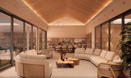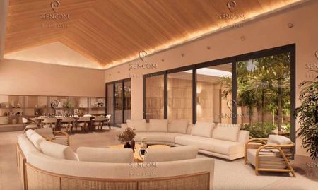 Perfecta para descansar o recibir invitados, la villa ofrece una sala de cine privada, una sala de estar acogedora y un comedor formal. En el exterior, encontrarás un jardín bellamente paisajístico con un gazebo, una gran piscina con jacuzzi y varias áreas de descanso ideales para disfrutar del clima tropical.