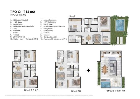 Los apartamentos en el 1er nivel tienen jardín y piscina privada