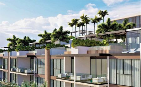 Los apartamentos en el 5to nivel son áticos y tienen una piscina privada y una gran terraza en un segundo nivel.