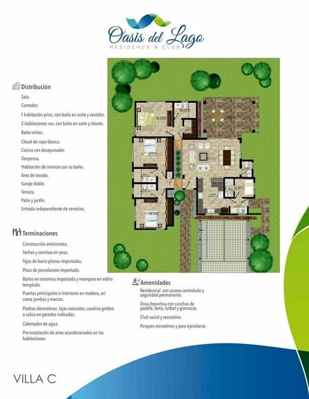 Oasis del Lago alberga 477 villas dentro de un área aproximada de 450,000 m2, donde el 50% son areas verdes y recreativas para que las familias con sus niños disfruten sin ningún tipo de peligro. Cuenta con un sendero ecológico perfecto para recrearse, pasear, ejercitarse o caminar con altos niveles de seguridad y varios accesos peatonales desde residencial.