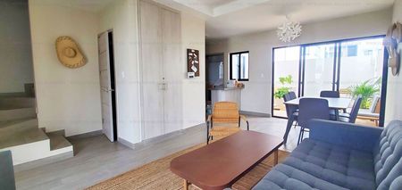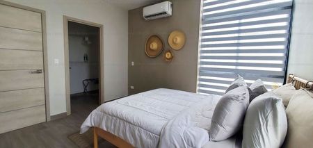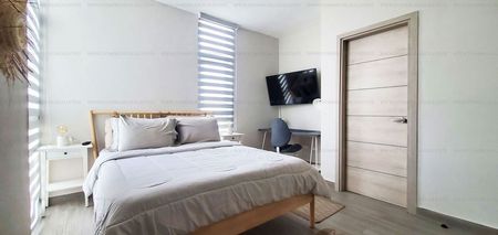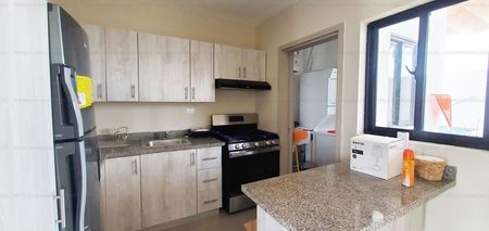 El townhouse cuenta con un área común que incluye una piscina, zona de barbacoa y área de juegos infantiles. Con 3 habitaciones y 2.5 baños, proporciona un amplio espacio para una vida cómoda. El townhouse está equipado con aire acondicionado tipo inverter y una lavadora-secadora para tu conveniencia.