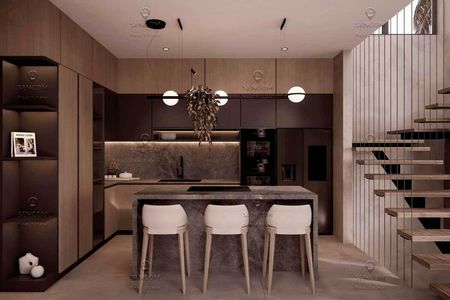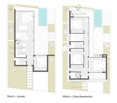 La villa cuenta con dos accesos. El primer acceso, a través del garaje en el nivel menos uno, garantiza comodidad y privacidad. El segundo acceso, en el nivel de la zona de día, conecta directamente con la cocina abierta, la sala de estar, el comedor y una habitación. Esta disposición asegura una perfecta fluidez entre los espacios interiores y exteriores, combinando el confort de la vida cotidiana con un elegante espacio de ocio: una terraza con piscina y vistas inigualables.