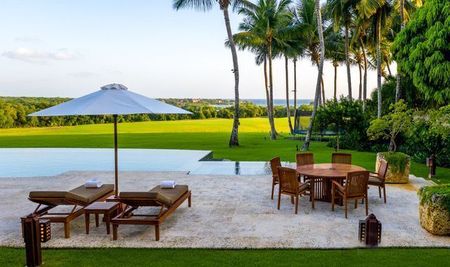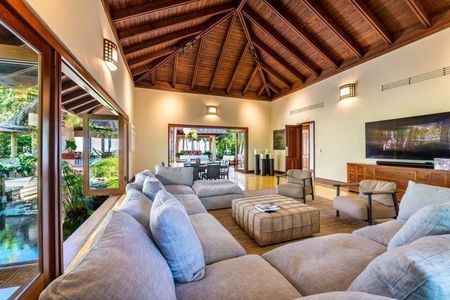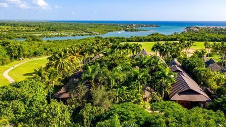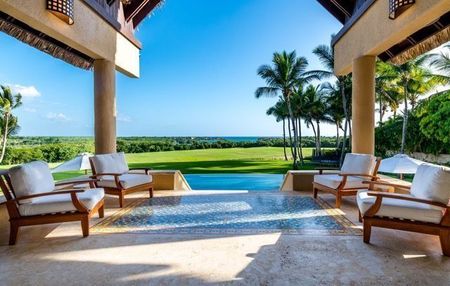 Hermosa villa con diseño tradicional y vista espectacular en Casa de Campo para la renta corta. La villa tiene 6 dormitorios con sus baños, cuarto de servicio y piscina grande. La cocina totalmente equipada.